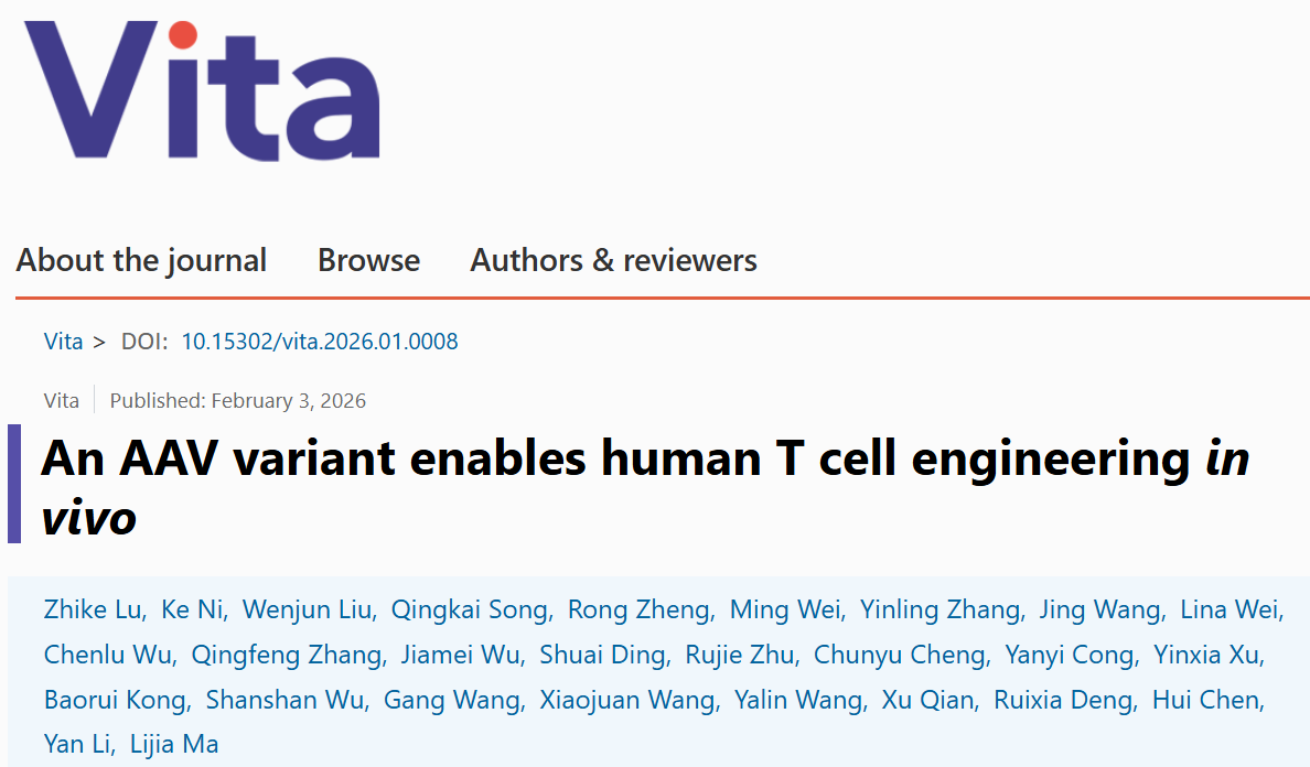 2026年2月3日,西湖实验室、昌平实验室马丽佳团队联合南京大学模式动物研究所、昌平实验室李颜团队在Vita发表了题为"An AAV variant enables human T cell engineering in vivo"的研究论文。 该研究首次报道了一种能够高度特异性靶向人T细胞的腺相关病毒(AAV)变体—AAV6-M2。研究团队利用该载体在红斑狼疮(SLE)人源化小鼠模型中,实现了“单针给药”体内生成CAR-T细胞,成功清除致病B细胞并逆转了狼疮肾炎等器官损伤。 这一突破性成果不仅解决了AAV载体肝脏毒性的瓶颈,更将CAR-T疗法从复杂的“个性化定制”转化为通用的“货架型基因药物”,为自身免疫疾病的治疗开辟了全新路径。